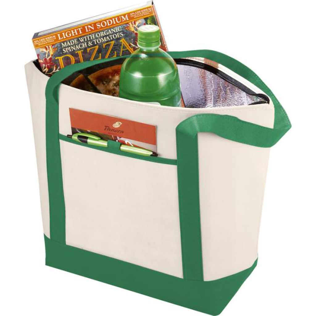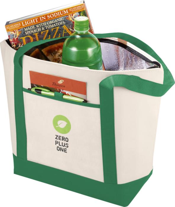 The sleek-designed Lighthouse cooler tote looks like an ordinary bag, but looks can be deceiving. Put a cold can in the large main compartment, close the zipper, and the product will stay refrigerated. The 28 cm long handles make the bag easy to carry on the shoulder. The cooler bag has an open front pocket and Pen loop: (accessories not included). The cooler tote consists of 80 g/m² PP plastic, a versatile and lightweight material.